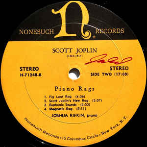 Vinyl LP: Scott Joplin, Joshua Rifkin-Piano Rags